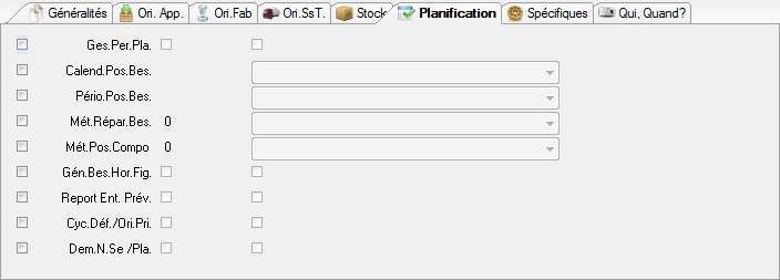 Les données spécifiques concernent les données pouvant être manipulées par la règle de calcul sur articles exécutée lors du calcul de planification. Voir Documentation Planification.