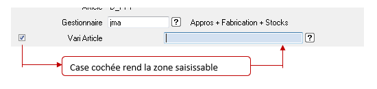 Exemple : saisie du vari article