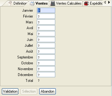 Afin de ne pas gérer les ventes pour un ou plusieurs mois, il est nécessaire d'initialiser le coefficient à « ? ».