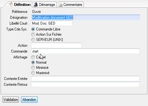 COMMENTAIRE : ‘Lancement commande système d’ouverture du fichier’