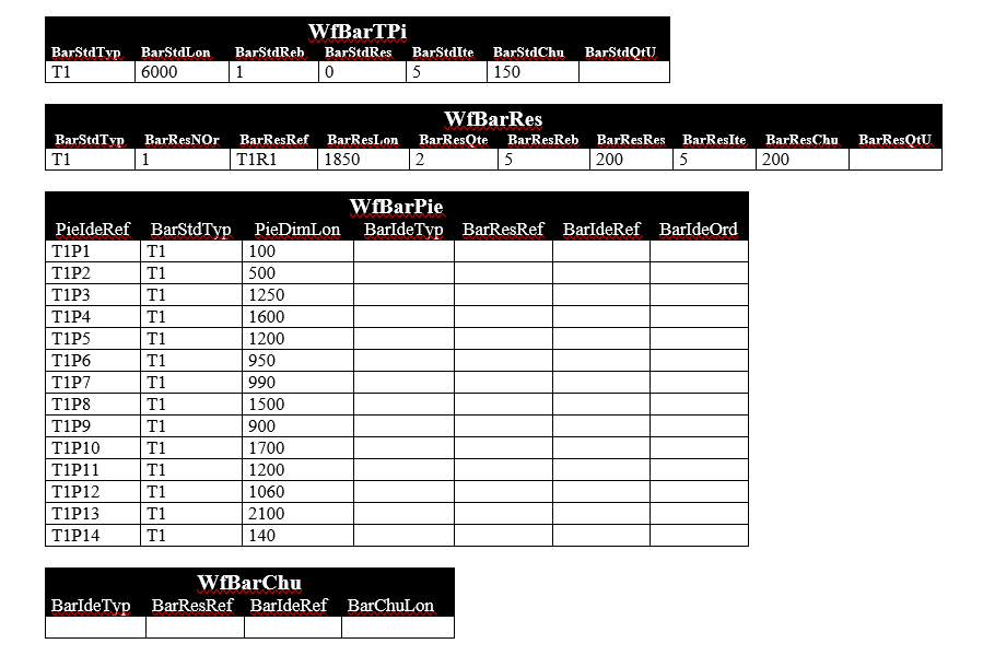 Remarque : cette information permet de maintenir après calcul les barres de longueurs non standards non utilisées durant la simulation, qui devront être complétées de la liste des chutes générées par le calcul (liste WfBarChu).