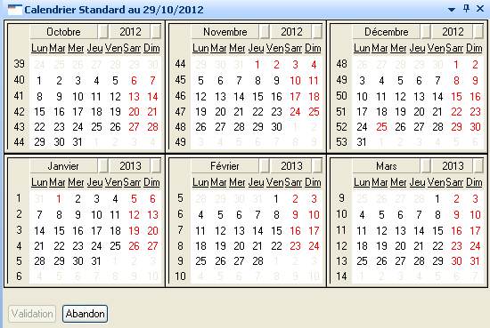 Ces deux actions permettent de visualiser le calendrier choisi (dans les onglets ‘Calcul Actuel’ et Calcul Futur’) avec la présentation choisie :