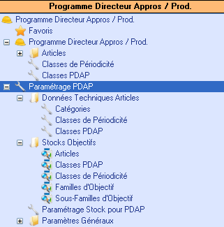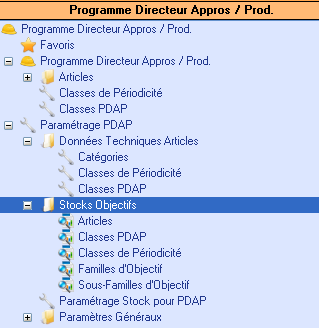 Une Sous-Famille d’objectif (paramètre utilisateur « Paramètres pour Prog. Dir. De Prod. / Sous-Familles Objectifs de stock »).