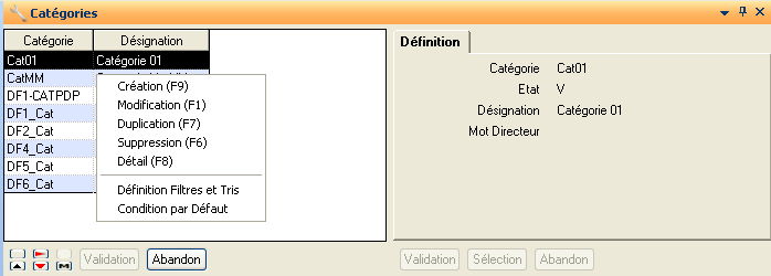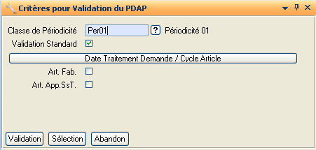 Indique si on souhaite ou non faire une validation standard. Cette zone est initialisée à Oui par défaut.