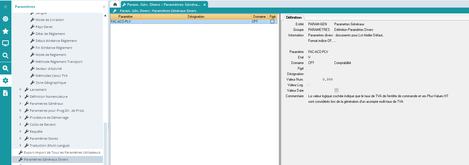 Pour activer ce paramètre, aller dans les paramètres Généraux divers paramètre FAC-ACO-PLV :