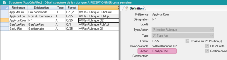 Puis dans la structure, on crée une ligne qui correspond à cette action avec :