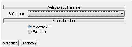 Le critère de ce traitement permet d’exécuter l’action de calcul (régénératif ou par écart) pour le planning sélectionné.