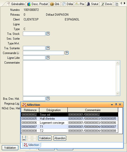 Soit la commande suivante dans l’ergonomie classique DIAPASON liste-fiche :