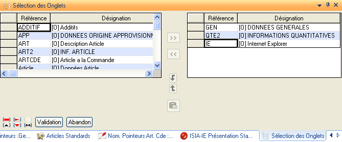 L’utilisateur sélectionne le(s) onglet(s) parmi la liste des onglets qui ont été créés.