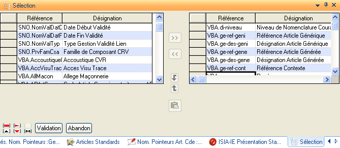Après avoir sélectionné les champs (variables SNO, variables VBA, variables VAC et Listes Paramétrées), le bouton Validation enregistrera les sélections, comme le montre l’écran suivant :