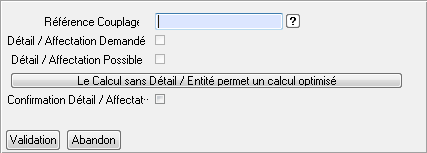 Si « Détail / Affectation Demandé » est coché, la valeur sera Faux si au moins une simulation, parmi les simulations rattachées au couplage, n’a pas le champ « Optimisation Calcul » égal à 1 ou à 3 (Voir Notion Optimisation Calcul sur la simulation.) sinon la valeur sera Vrai.