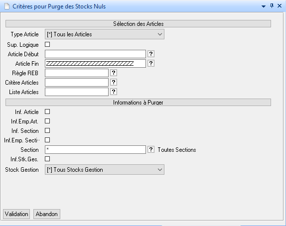 Si « Infos Articles » est non coché, suppression de toutes les données de stock article – emplacements (avec stock nul).