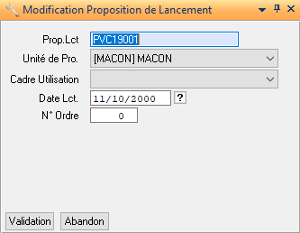 Comment modifier les zones « Proposition Lancement », « Unité de production », « Cadre d’utilisation » ,« Date » , “N°Ordre” de la proposition de lancement (Action Modification) ?