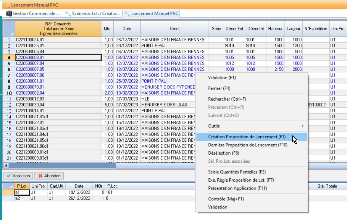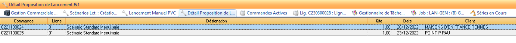➡️ Les demandes de fabrication liées à la proposition de lancement sont sélectionnées en bleu !