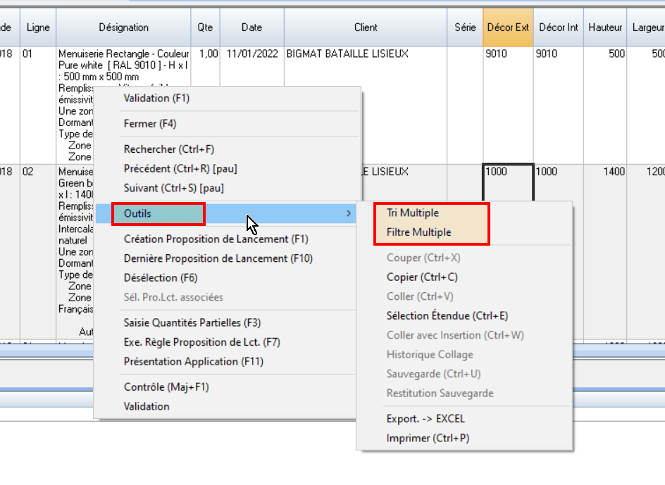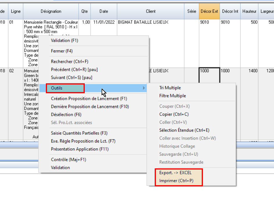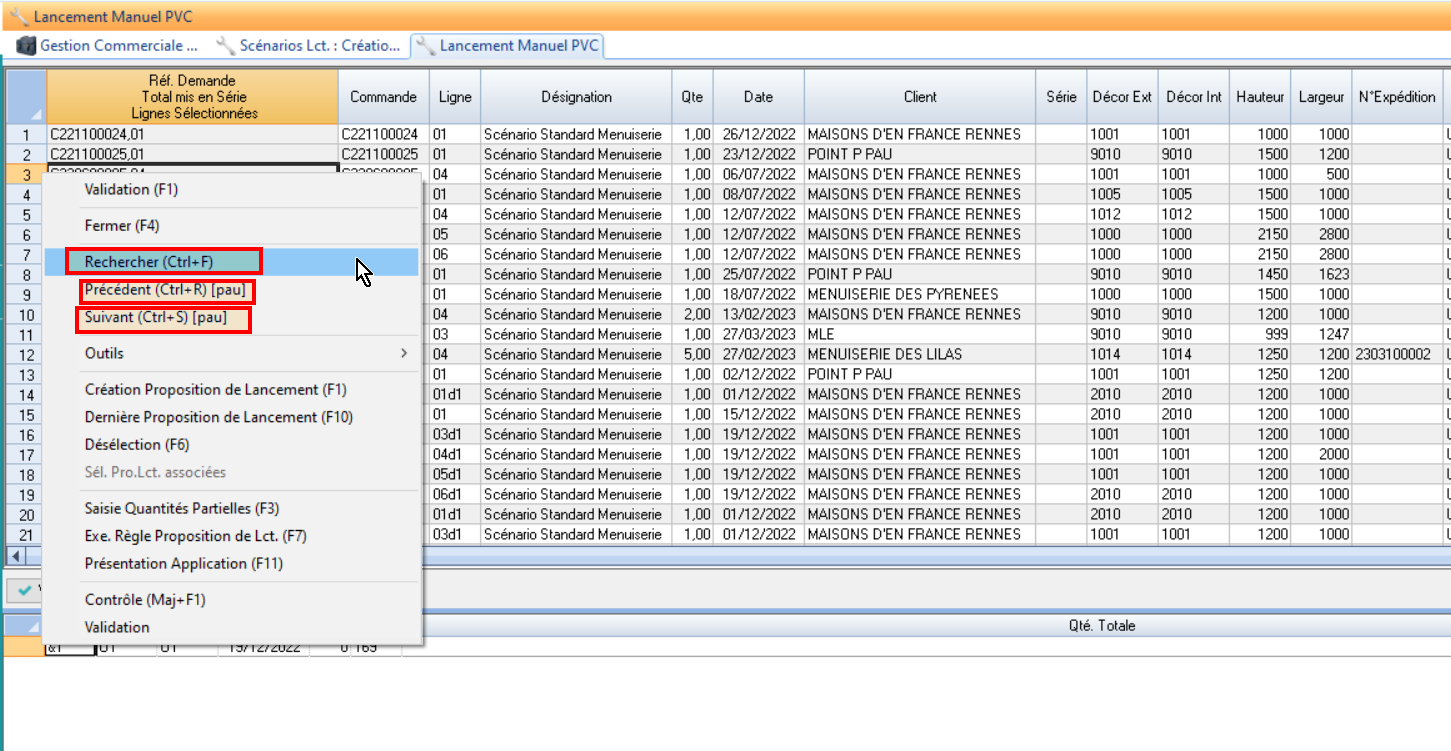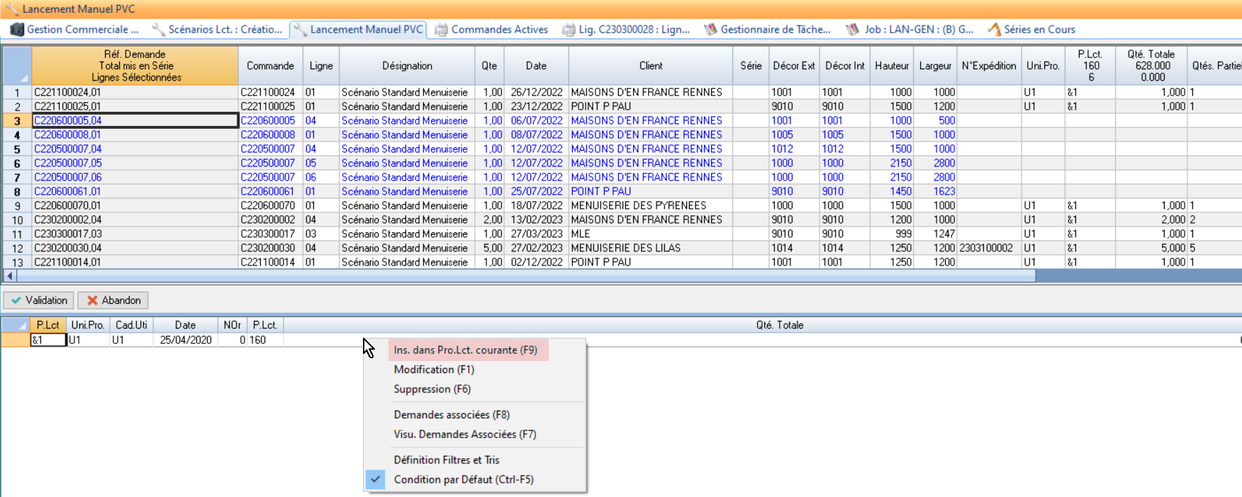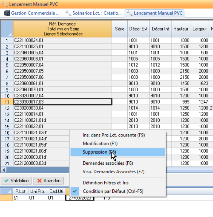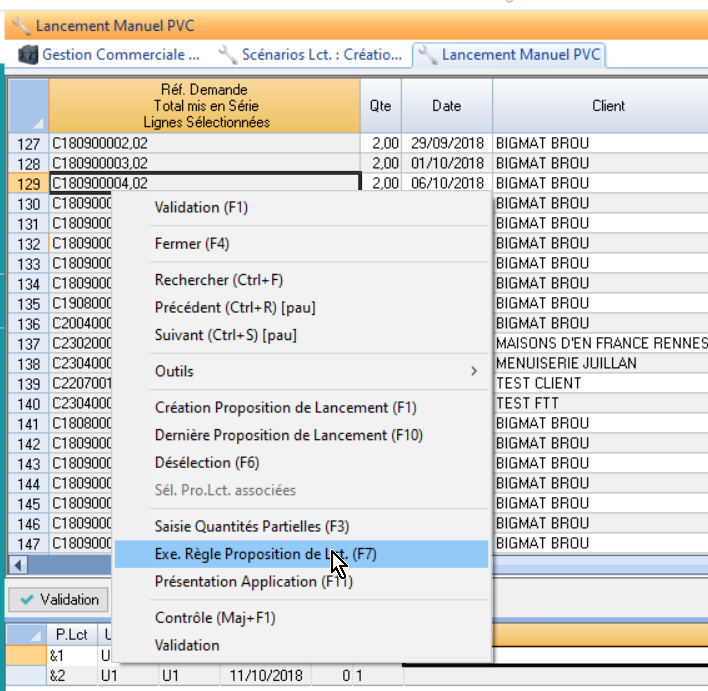générer les Demandes d’Achat de vitrages au lancement