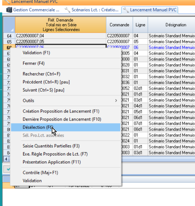 Comment désaffecter une demande de fabrication à une série ? ( Action Désélection) ?