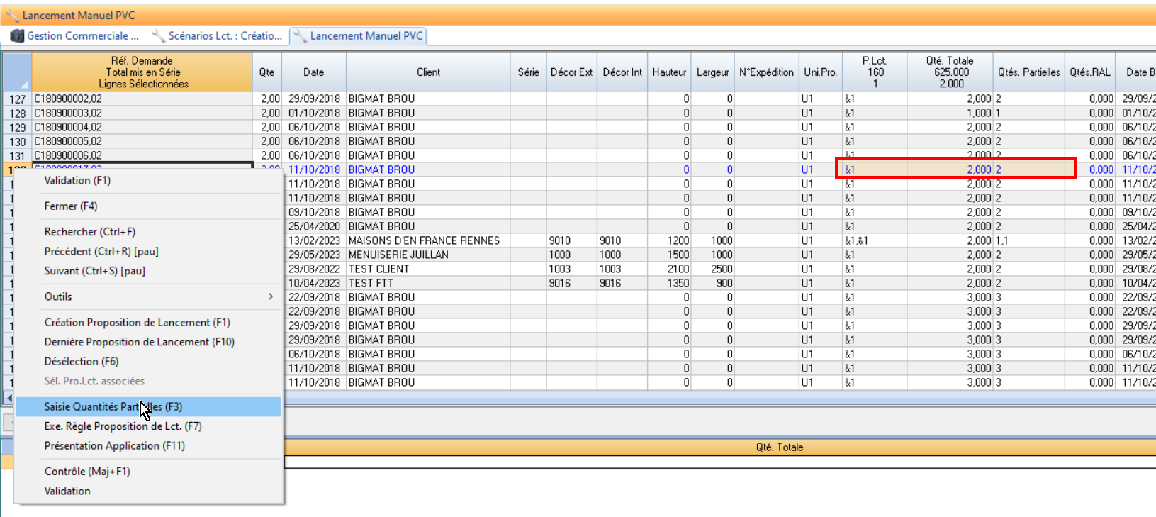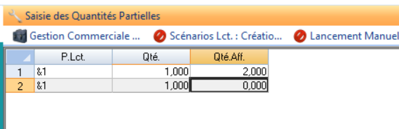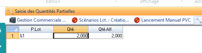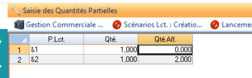 On clique sur “Saisie Quantités partielles”