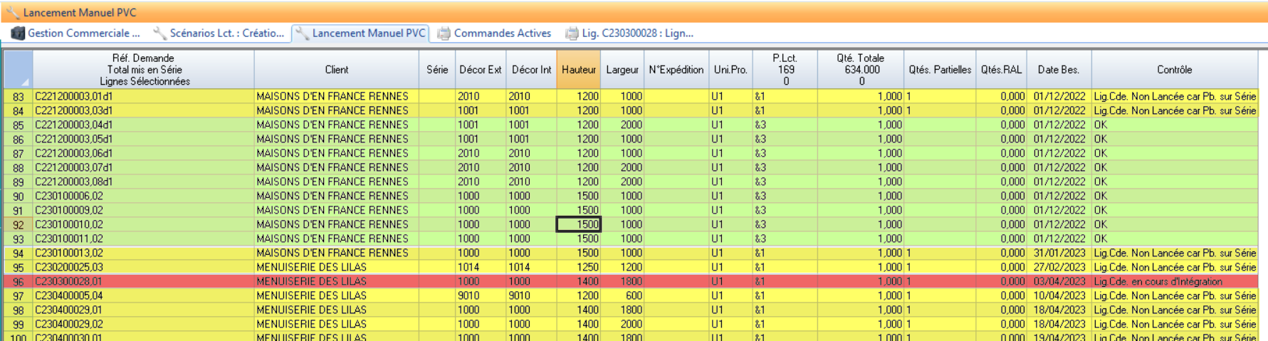 “Lig.Cde. Non Lancée car Pb. sur Série” | Toutes | Il n’y a pas de problème sur cette ligne, mais elle appartient à une série dont au moins une Demande de Fabrication est à problème. |