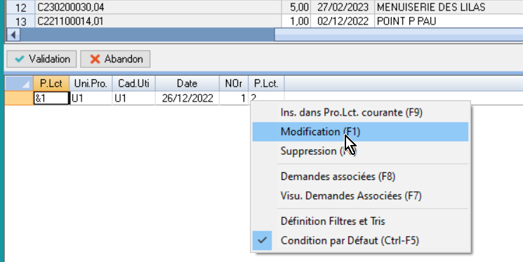 L’action Modification permet de modifier les valeurs de ces différents champs.