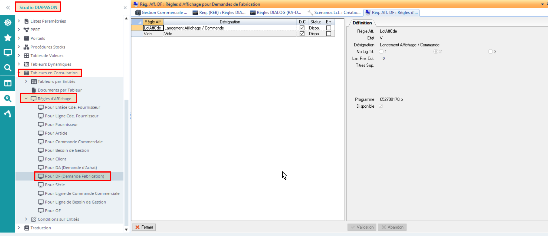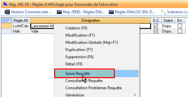 Une fois que la règle d’affichage est créée, elle va automatiquement générer une requête REB de type RA-DF qui portera le même nom !