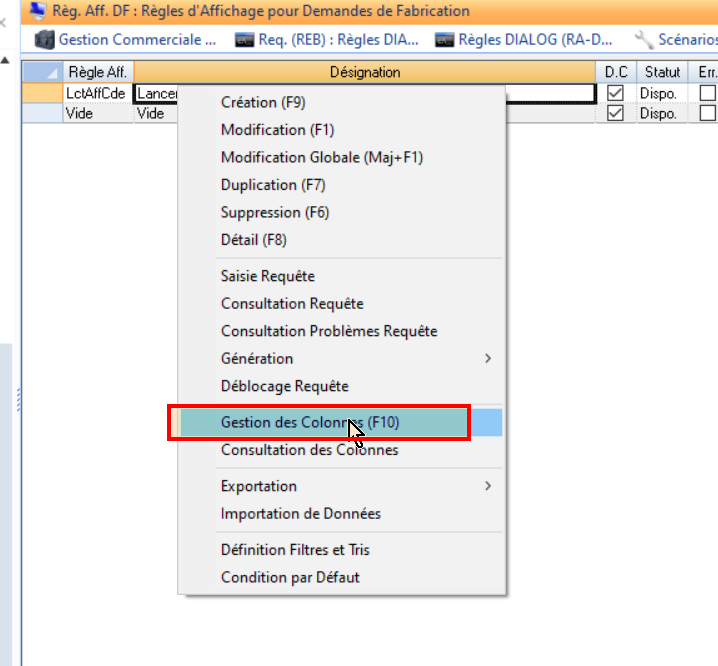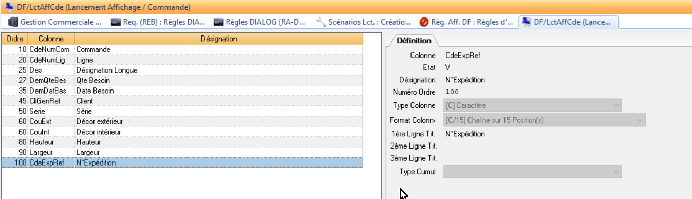 C’est dans cette règle d’affichage qu’on va pouvoir définir les différentes colonnes à afficher dans le tableur.