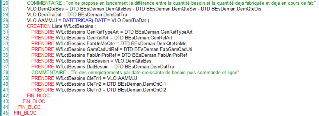 ![]() | On récupère les demandes de fabrication dans la table BesDeman. |