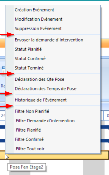 ![]() | On indique quelles actions sont disponibles sur le GANTTOn liste dans l’ordre d’apparition des actions qu’on souhaite avoir dans la liste déroulante au clic gauche: