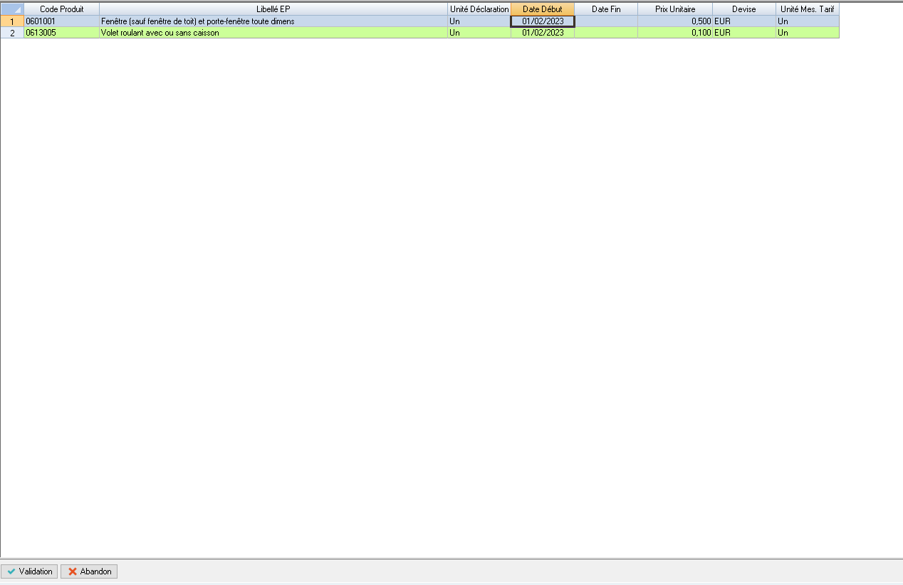 Cette fonctionnalité permet de saisir ou modifier les tarifs des éco-organismes.