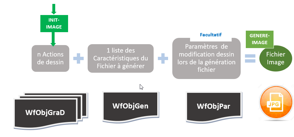Permet de générer, à partir d’une structure d’entrée alimentée par DIALOG, une ou plusieurs images. La fonction renvoie ‘’ dans la variable résultat si la génération s’est bien passée, ‘*PB ‘ si un problème est survenu.