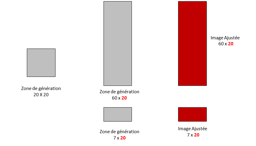 La taille de la zone de génération est recalculée par rapport au ratio de l’image à générer. On prend la hauteur de génération comme valeur de référence