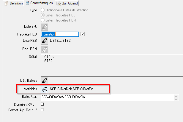 Sur la source de données Diapason, dans la zone variable, faire glisser les SCR ou VCR de la requête. Ces variables sont identifiées par [REQ]