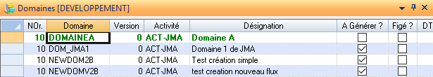 Le couple domaine-version en développement est vers l’environnement d’exploitation. Le temps du transfert effectif, cette ligne apparaît en vert dans la liste des domaines pour signaler qu’il est destiné à basculer dans l’environnement d’exploitation.