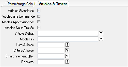 Calcul des OFs correspondants à des articles standards.